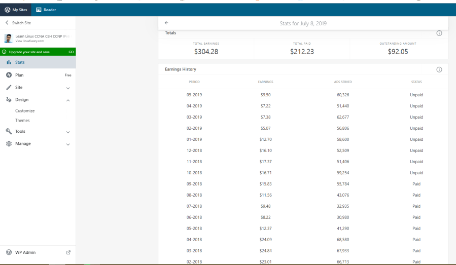 Question4: how much you earn from your wordpress.com (https://linuxtiwary.com) blog , drupal blog (http://slashroot.in) and blogspot.com blog (www.satishtiwary.com)?